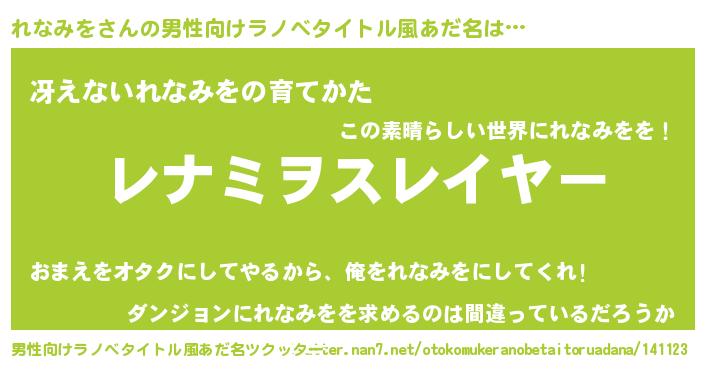 | 胡散臭い通販商品みたいなあだ名 | 『信頼と実績のネックレス…その名も「れなみを」』 |