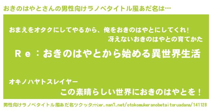 | 女子向けラノベタイトル風あだ名 | 『おきのはやとストレイドッグス』 |