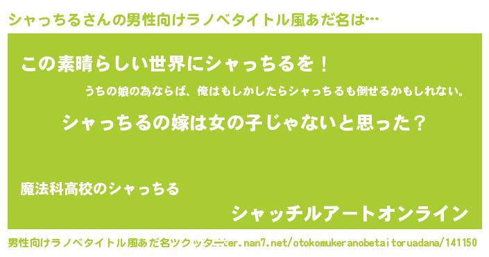| 女子向けラノベタイトル風あだ名 | 『シャっちる様がみてる』 |