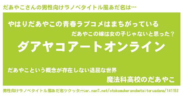 | ファンタジー風あだ名 | 『ダアフェル』『エターナルダアヤコー』 |