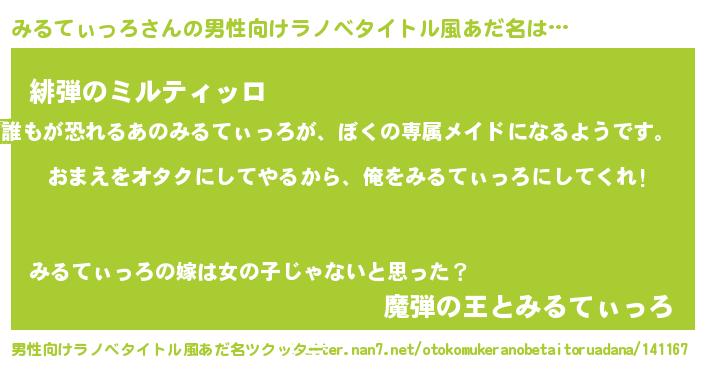 | 女子向けラノベタイトル風あだ名 | 『みるてぃっろ恋絵巻』 |