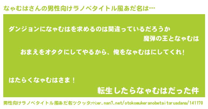| 胡散臭い通販商品みたいなあだ名 | 『お金では代えられないイリジウム磁石…その名も「なゃむは」』 |