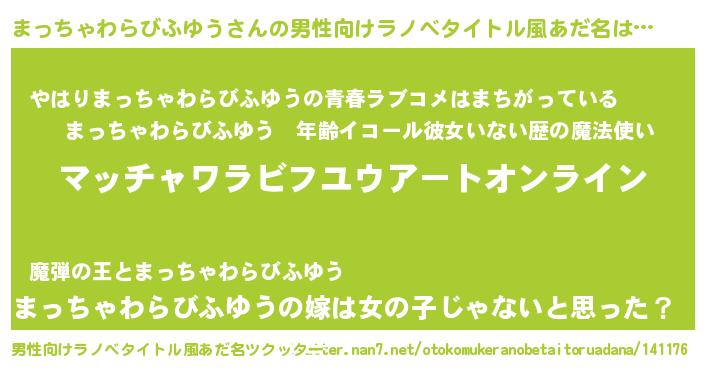 | 女子向けラノベタイトル風あだ名 | 『まっちゃわらびふゆう姫と円卓の騎士』 |