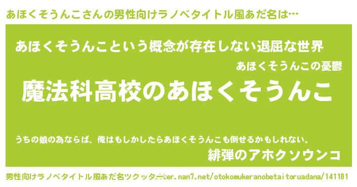 | 胡散臭い通販商品みたいなあだ名 | 『テレビで話題のアガリクス…その名も「あほくそうんこ」』 |