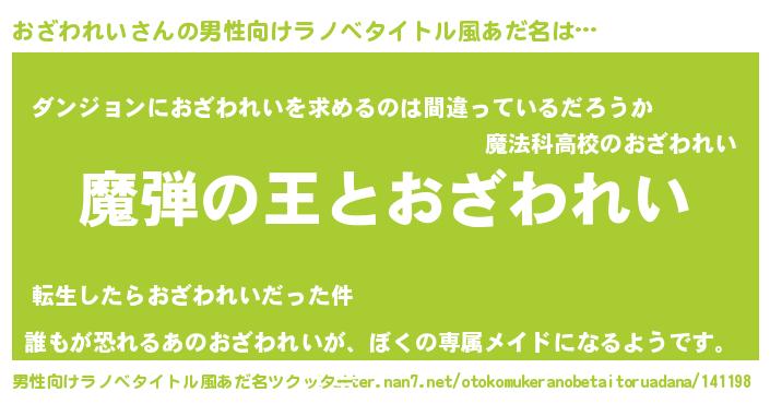| 意味不明あだ名 | 『住所不定無職おざわれい(93歳)』 |