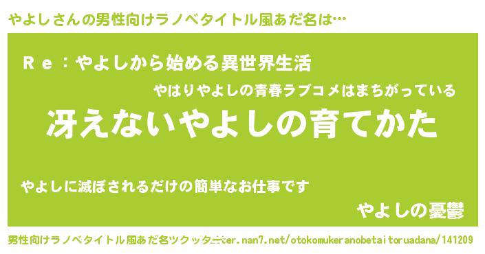 | 女子向けラノベタイトル風あだ名 | 『シンデレラやよし家の靴箱館』 |