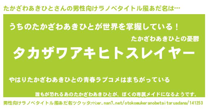| ヘコむあだ名 | 『たかざわあきひと(笑)』『たかにゅー』 |