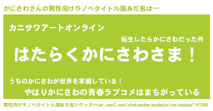 | 女子向けラノベタイトル風あだ名 | 『首の姫と首なしかにさわ』 |
