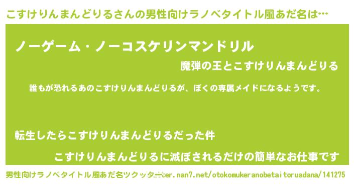 | 胡散臭い通販商品みたいなあだ名 | 『来世でも幸せになれる招き猫…その名も「こすけりんまんどりる」』 |