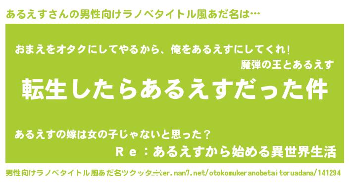 | ヘコむあだ名 | 『あるっぺ』『あるえす(小並感)』 |