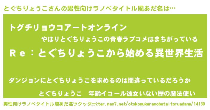 | 女子向けラノベタイトル風あだ名 | 『とぐちりょうこストレイドッグス』 |