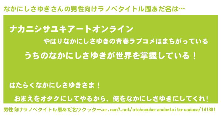 | 胡散臭い通販商品みたいなあだ名 | 『億万長者になれる霊験あらたかなお札…その名も「なかにしさゆき」』 |