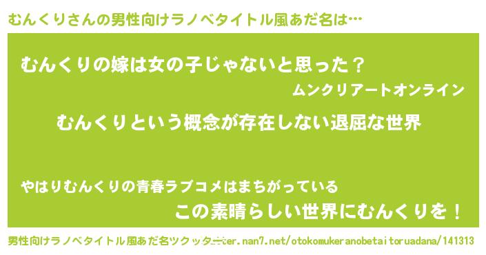 | 女子向けラノベタイトル風あだ名 | 『異世界で失敗しない100のむんくり』 |