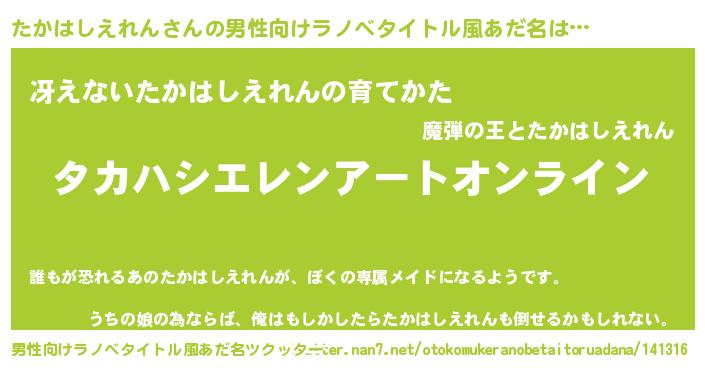 | 女子向けラノベタイトル風あだ名 | 『誰かこのたかはしえれんを説明してください! ~契約から始まるウェディング~』 |
