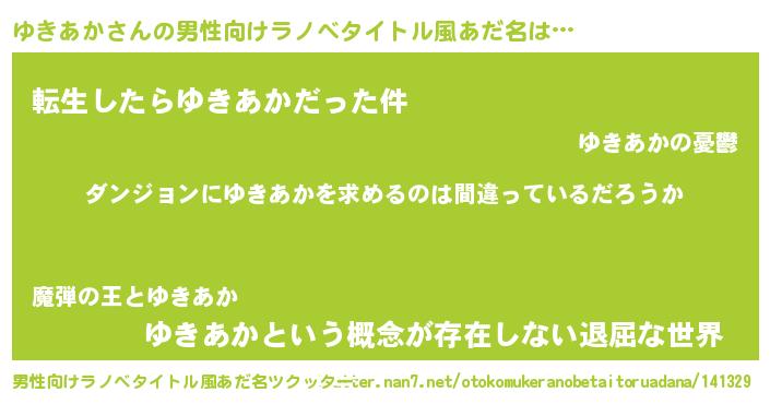 | 女子向けラノベタイトル風あだ名 | 『ゆきあかの卵を拾いまして』 |