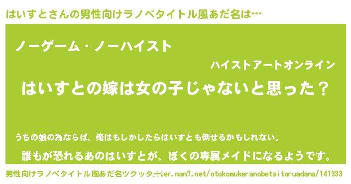 | 女子向けラノベタイトル風あだ名 | 『はいすと様がみてる』 |