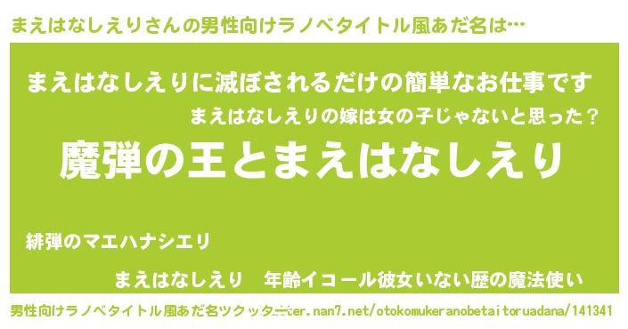 | 女子向けラノベタイトル風あだ名 | 『まえはなしえりが死なない童話 林檎のまえはなしえりの診療簿』 |