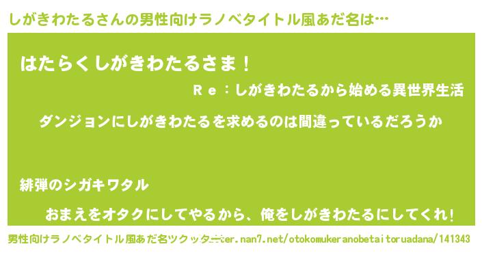 | 女子向けラノベタイトル風あだ名 | 『しがきわたるの卵を拾いまして』 |