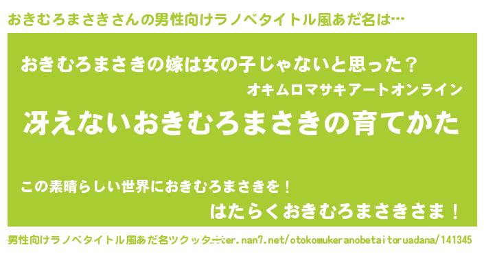 | 胡散臭い通販商品みたいなあだ名 | 『伝統あるサプリメント…その名も「おきむろまさき」』 |