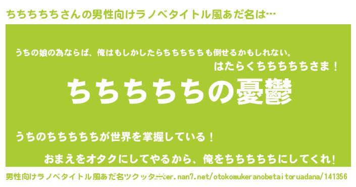 | 女子向けラノベタイトル風あだ名 | 『(仮)ちちちちちのやんごとなき事情』 |