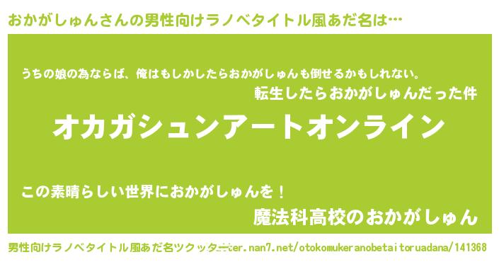| 2回繰り返すあだ名 | 『おかおか』『おおかか』『むかむか』 |