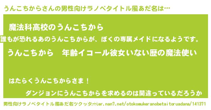 | 女子向けラノベタイトル風あだ名 | 『うんこちからの玉の輿計画!』 |