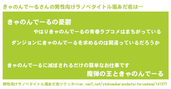 | 女子向けラノベタイトル風あだ名 | 『きゃのんでーるは平凡を望む』 |