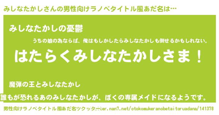 | 胡散臭い通販商品みたいなあだ名 | 『モテモテ間違いなしブレスレット…その名も「みしなたかし」』 |