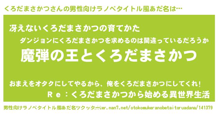 | 意味不明あだ名 | 『住所不定無職くろだまさかつ(74歳)』 |