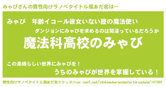 | 意味不明あだ名 | 『自称みゃび』『ニラ科みゃび属』 |