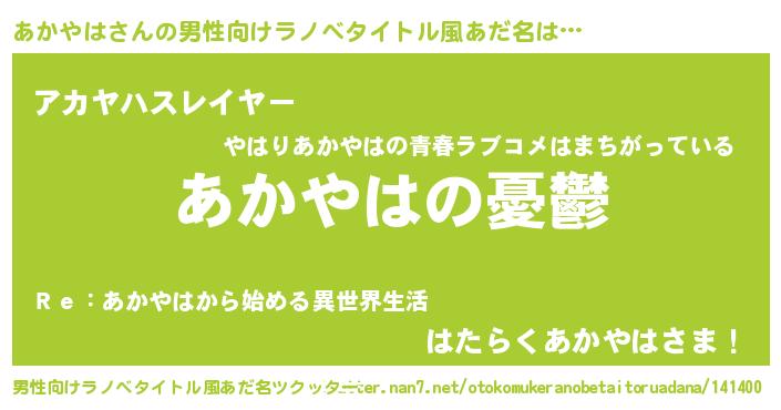 | 肩書あだ名 | 『あかやは御曹司』『あかやは中尉』 |