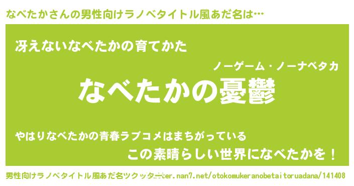 | 女子向けラノベタイトル風あだ名 | 『(仮)なべたかのやんごとなき事情』 |