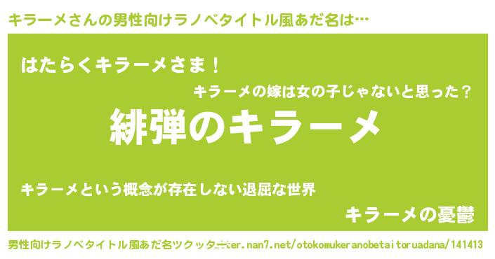 | 胡散臭い通販商品みたいなあだ名 | 『必ず成功するブレスレット…その名も「キラーメ」』 |