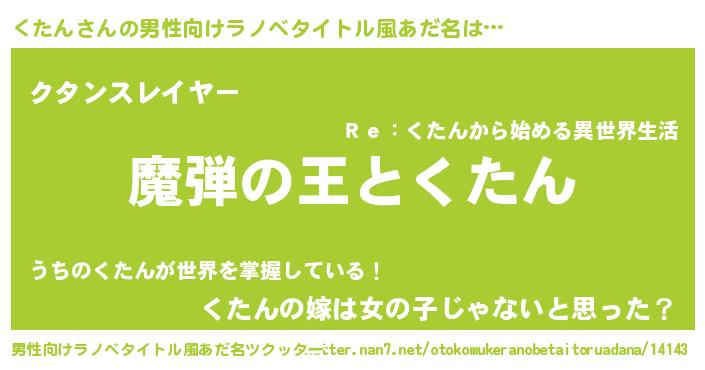 | 女子向けラノベタイトル風あだ名 | 『くたんが死なない童話 林檎のくたんの診療簿』 |