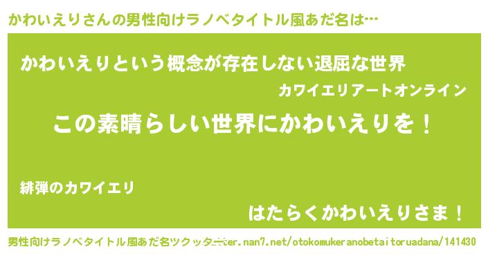 | 意味不明あだ名 | 『住所不定無職かわいえり(11歳)』 |
