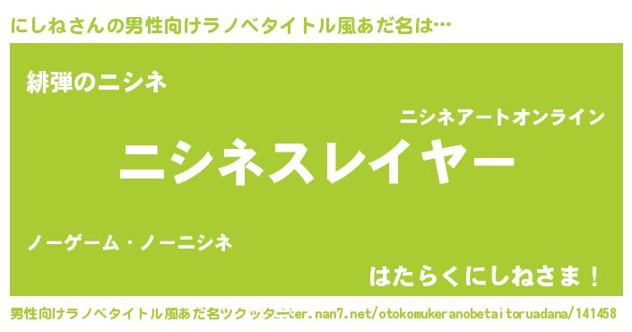 | ヒーロー風カッコイイあだ名 | 『スーパーニシネ』『正義の使者にしね』 |