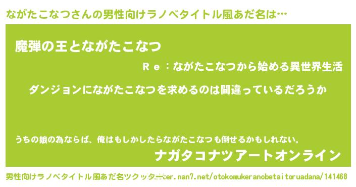 | 胡散臭い通販商品みたいなあだ名 | 『信頼と実績のネックレス…その名も「ながたこなつ」』 |