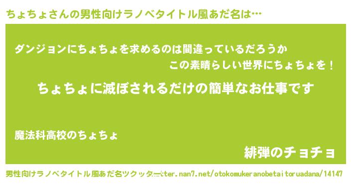 | 胡散臭い通販商品みたいなあだ名 | 『全米が絶賛したサプリメント…その名も「ちょちょ」』 |