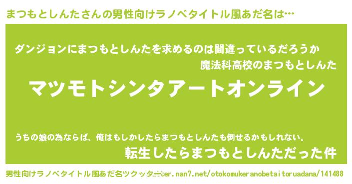 | 女子向けラノベタイトル風あだ名 | 『誰かこのまつもとしんたを説明してください! ~契約から始まるウェディング~』 |