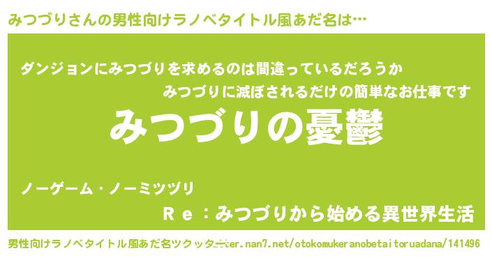 | 胡散臭い通販商品みたいなあだ名 | 『必ず成功する水晶球…その名も「みつづり」』 |