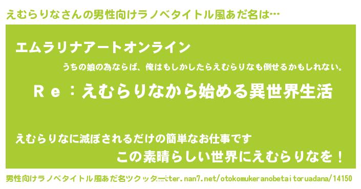 | ヒーロー風カッコイイあだ名 | 『サイバー戦士エムラリナ』 |