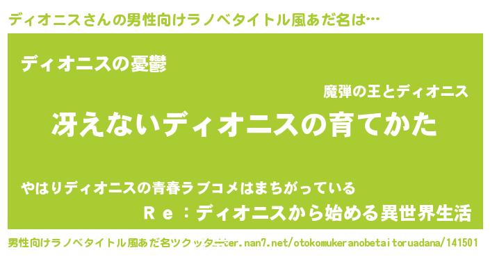 | 胡散臭い通販商品みたいなあだ名 | 『モテモテ間違いなし水晶球…その名も「ディオニス」』 |