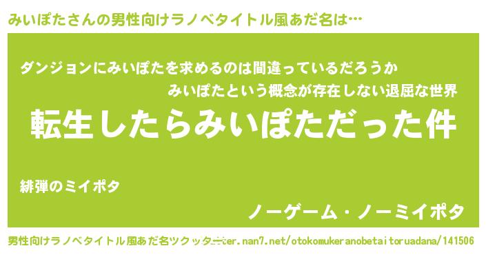 | ヘコむあだ名 | 『みいっぺ』『みいぽた(小並感)』 |