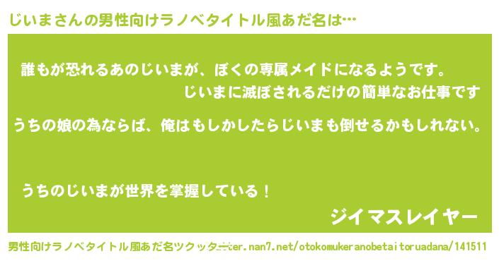 | 女子向けラノベタイトル風あだ名 | 『じいま伯爵の花嫁』 |