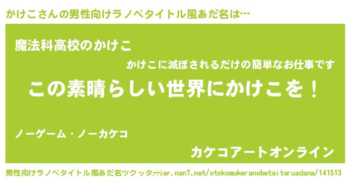 | 女子向けラノベタイトル風あだ名 | 『悪役かけこに転生したようですが、知った事ではありません』 |