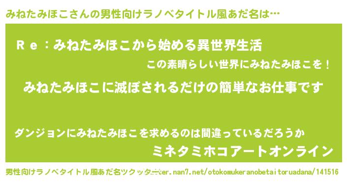 | 胡散臭い通販商品みたいなあだ名 | 『芸能人もオススメする冬虫夏草…その名も「みねたみほこ」』 |