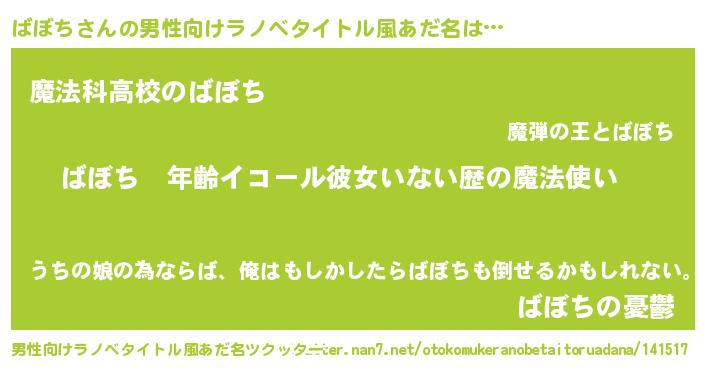 | 胡散臭い通販商品みたいなあだ名 | 『芸能人もオススメする高麗人参…その名も「ばぼち」』 |