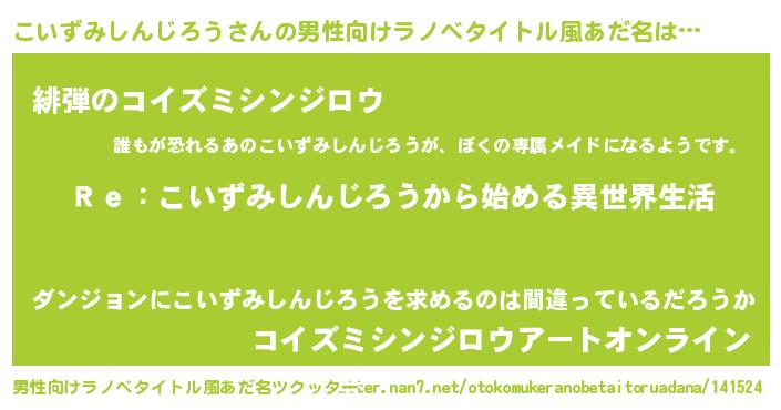 | 意味不明あだ名 | 『自称こいずみしんじろう』 |