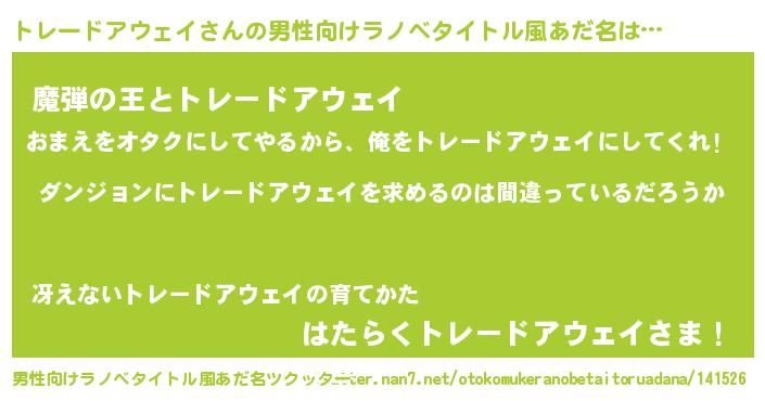 | 女子向けラノベタイトル風あだ名 | 『トレードアウェイは平凡を望む』 |