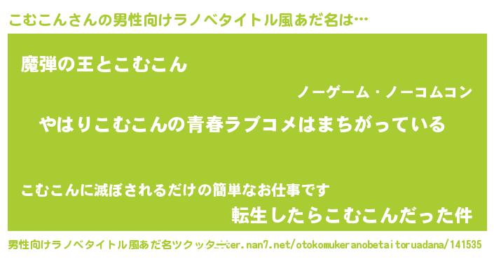 | 女子向けラノベタイトル風あだ名 | 『こむこんの雑貨屋さん』 |